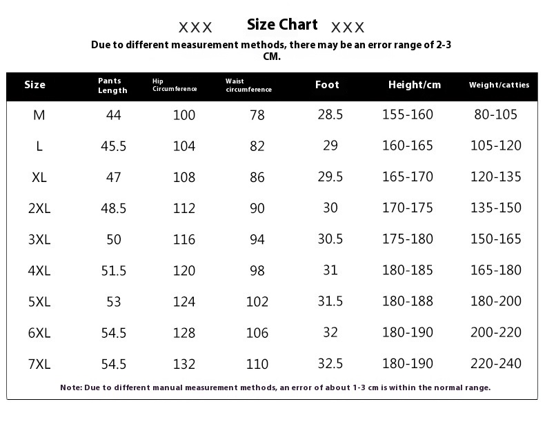 Size: M,L,XL,XXL,XXXL,4XL,5XL,6XL,7XL